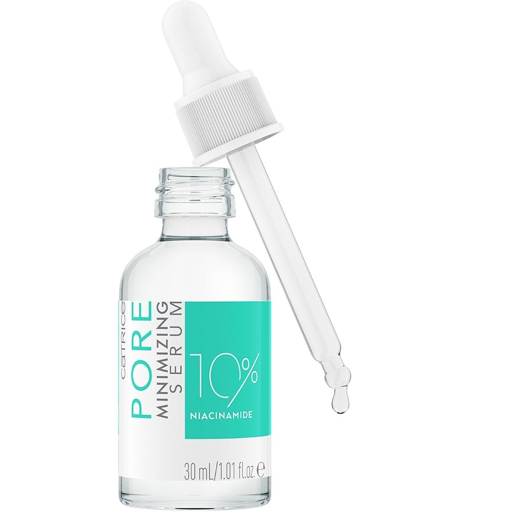 Catrice Pore Minimizing Serum obsahuje 10% niacinamidu, který se stará o minimalizaci viditelných pórů, reguluje mastnotu na pleti a výsledkem je matná a zdravě vypadající pleť. Jedná se o veganský produkt, ideální pro lidi s mastnou a problematickou pokožkou.