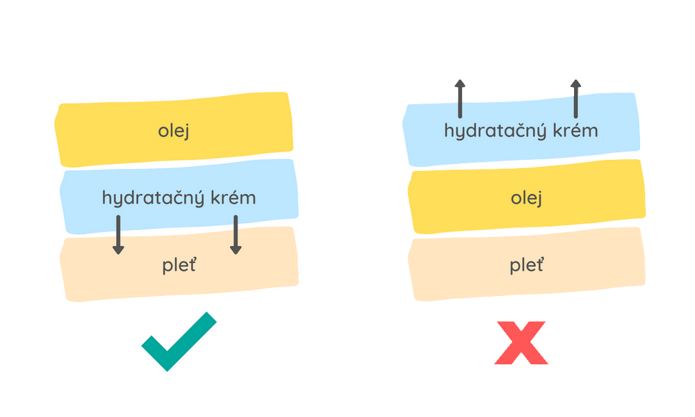 Představme si situaci, že pořadí krému a oleje jednoduše vyměníte. Co se stane? Pokud nejprve nanesete pleťový olej a teprve poté aplikujete hydratační krém, tak olej zabrání pronikání vody do pokožky. Některé zvláčňující oleje se sice mohou do pokožky ponořit a zjemnit ji, ale množství vody, které se do pleti dostane, bude opravdu minimálně. Humektanty, které hydratační krém s největší pravděpodobností obsahuje, se tak do pleti vůbec nedostanou a jediné, čeho celým tímto procesem dosáhneme, je plýtvání kosmetikou.
