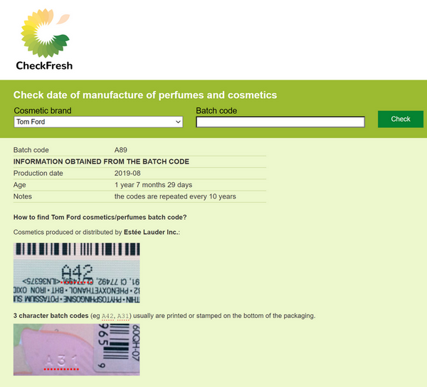 checkfresh.com - web pro kontrolu šarže kosmetiky