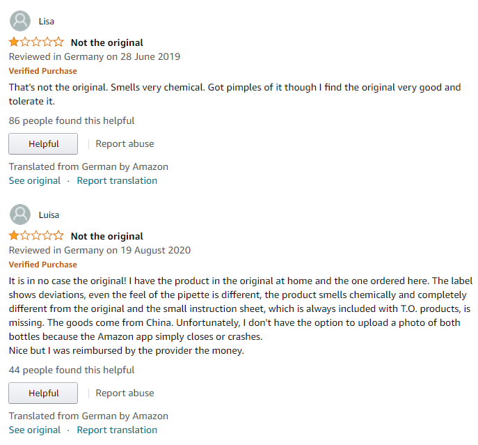 Hodnocení "The Ordinary Niacinamide 10% + Zinc 1%" na německém Amazonu Jaké jsou nejčastěji imitované produkty?